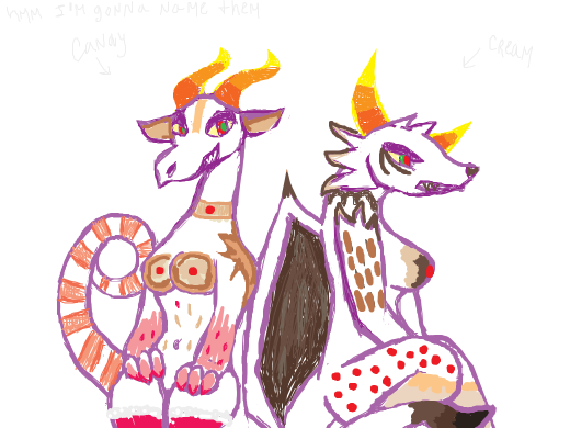 Two-headed candy conjoined twin dragons are trying to persuade you into entering Candy World.