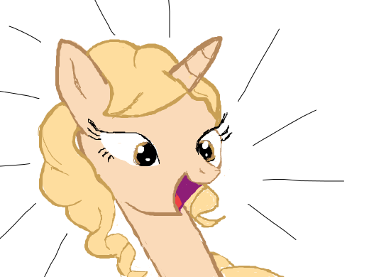 A unicorn with golden hair, a golden mane, and bronze eyes, looking suprised at something.