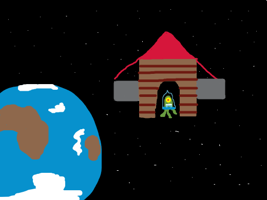 Plankton (from Spongebob) has moved into a red house that orbits the Earth.