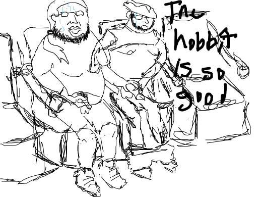 2 fat men jacking each other off at the movie theatres watching The Hobbit and praising the shit movie.