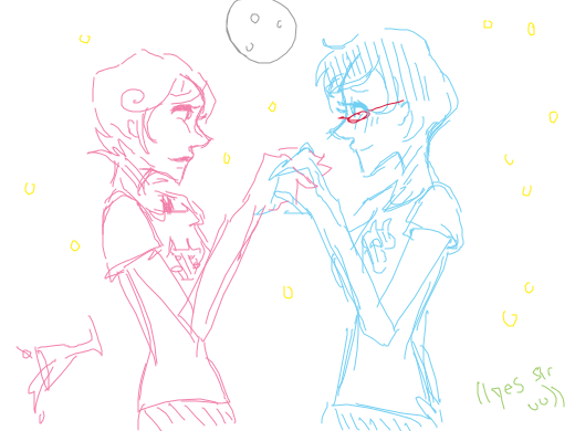 DRAW THE JANE HuMAN AND THE ROXY HuMAN. THEY SHALL BE. GAZING INTO EACH OTHER'S EYES. AND. HOLDING HANDS. IN. THE MOONLIGHT.