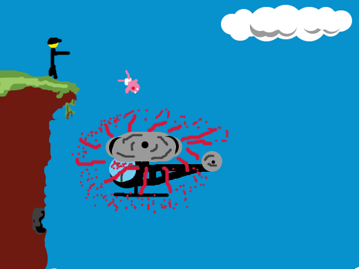 a guy throwing babies off a cliff into the blades of a moving helicopter