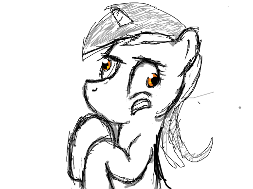"I am freaked out right now! because someone pinched my mother in da butt! that why im lokoin crazy" says a pony