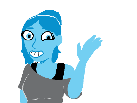 Blue girl waves uncomfortably