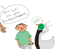 Pablo and his pet duck are facing adversity as they are confronted by a mysterious floating arm that offends others as a defense mechanism.