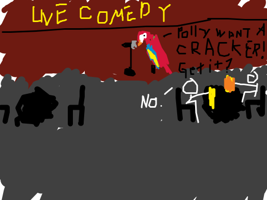 Hydrocephalic bandit faces off against a sentient pat of butter.