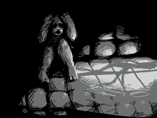A scared man in a dark dark cellar