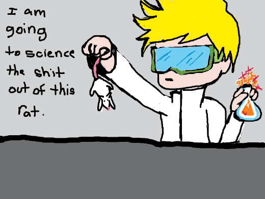 Lab scientist looks like his doing an experiment on a mice wiyh a test tube